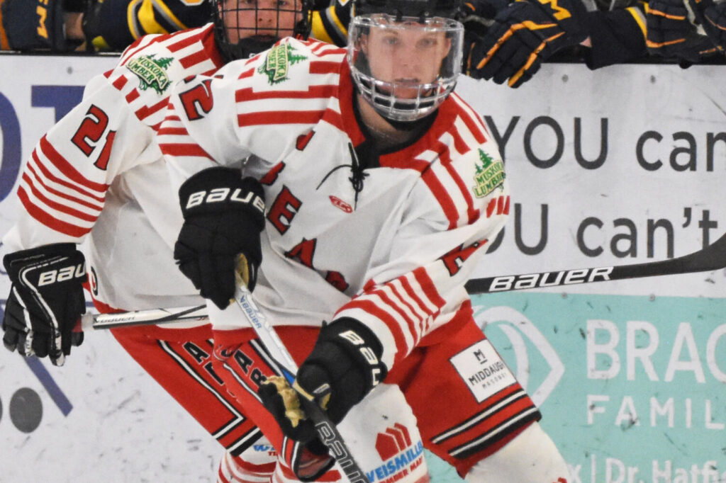The Family Day Holiday Monday seen the Bears host their Muskoka neighbours Huntsville Otters in a wrap up to the 25-26 season, at the Muskoka Lumber Community Centre. A packed Lumber Yard seen 510 fans be entertained in a back and forth battle between the rivals. Otters opened the scoring, but just before the end of the period, speedster Liam Cardiff stole the puck and raced in alone to tie the game before the break at 1-1, with a shorthanded effort.